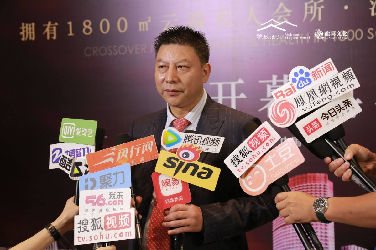 各大媒體爭(zhēng)相報(bào)道雅致開業(yè)慶典,美豪董事長(zhǎng)回答記者問(wèn)題。