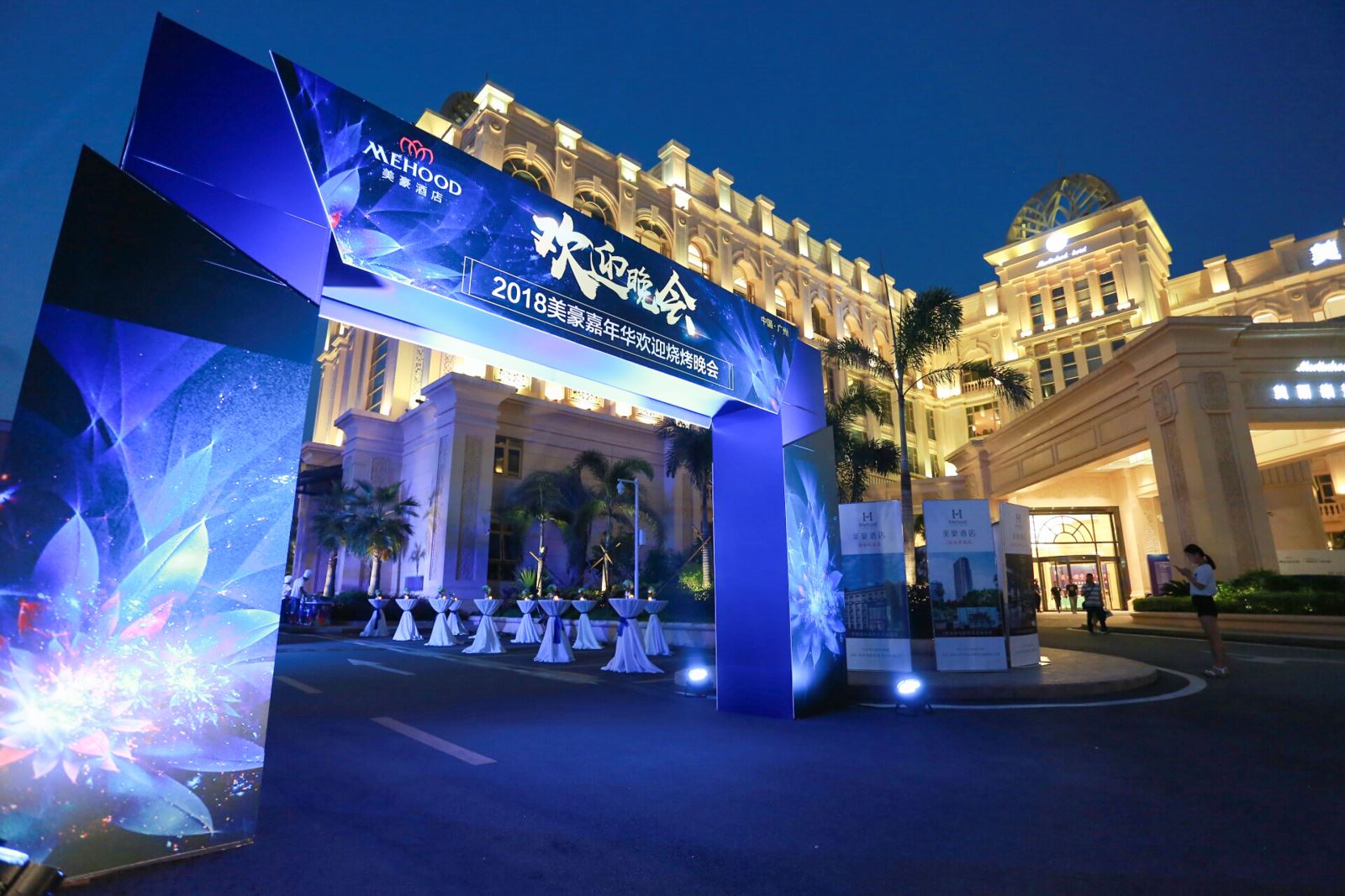 美豪嘉年華酒店外場布置,展示美豪集團旗下200多家酒店分布,