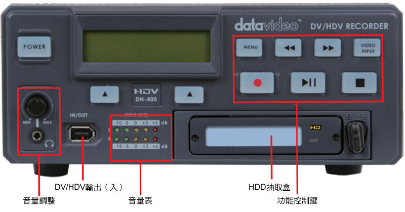 臺(tái)灣洋銘(datavideo)DN-500外觀符合標(biāo)準(zhǔn)19吋機(jī)架及1U高度,可裝置高容量硬盤儲(chǔ)存HDV及DV25高畫質(zhì)影像格式,是系統(tǒng)整合最佳錄放機(jī)。