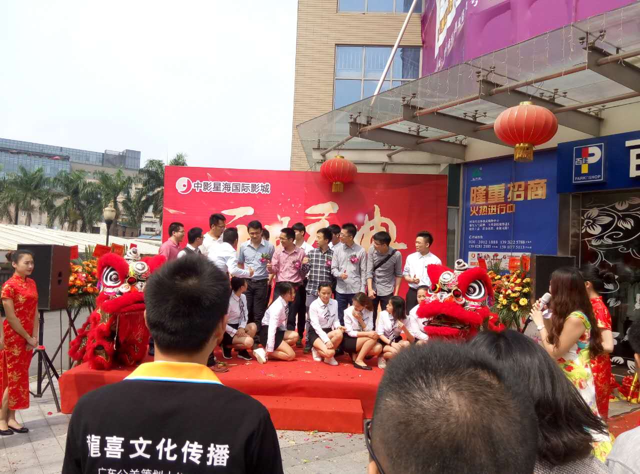 【活動(dòng)主題】中影星海國際影城開業(yè)慶典 【活動(dòng)時(shí)間】2017年4月9日 【活動(dòng)地點(diǎn)】廣州市番禺市橋光明北路281號(hào)百佳超級(jí)廣場(chǎng)4樓 【策劃執(zhí)行】廣州龍喜文化傳播有限公司