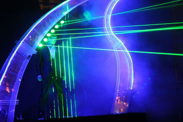 激光豎琴是指一架沒(méi)有琴弦的豎琴,取而代之的是明亮的光束,使用者只需撥動(dòng)光束,便如同撥動(dòng)了琴弦,依然可以演奏一段旋律。激光豎琴是有創(chuàng)藝國(guó)際演藝團(tuán)隊(duì)任億(阿五)先生歷時(shí)1年多制作而成,八個(gè)激光管發(fā)出的光束作為琴弦,用透明度和硬度極強(qiáng)的進(jìn)口亞克力做琴架,用激光系統(tǒng)程序軟件及開(kāi)關(guān)控制整個(gè)系統(tǒng)的通斷。利用單片機(jī)控制播動(dòng)激光琴弦時(shí)發(fā)出不同頻率音調(diào)的聲音。