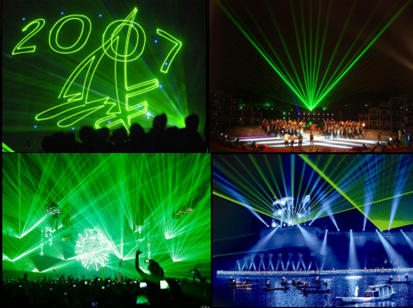 激光秀是利用激光本身的特點(diǎn)和具備投射出圖像輪廓的特點(diǎn)來為企業(yè)或者活動(dòng)方制作燈光效果和宣傳元素。在電腦控制下激光光束經(jīng)過色彩合成調(diào)制器,激光掃描儀投射在空間或屏幕上,并能展示各種特殊的空間光束效果,精彩炫目的動(dòng),靜,三維圖文效果。