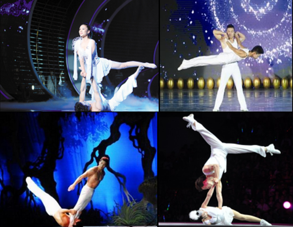 雜技節(jié)目《力量》與《肩上芭蕾》,編排巧妙,扣人心弦造型變化多端,軟硬功夫相輔相成,十分吸引眼球。給人一種藝術(shù)的美感,舞臺上的他們更是默契十足,再高難度的動作都能被他們完美地演繹。成功實(shí)現(xiàn)了浪漫抒情與驚險(xiǎn)高難珠聯(lián)璧合中最為精彩的一面。