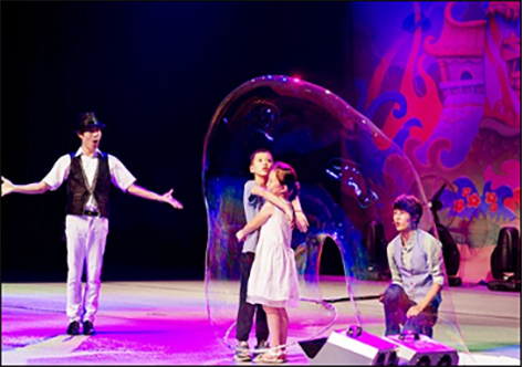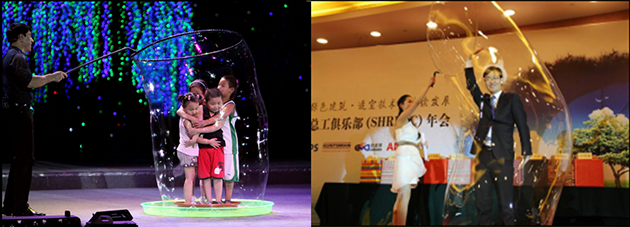 泡泡秀中,可讓孩子參與到表演中,他們可以充當演員支配演出的進行,與演員一起用泡泡制造衣服裝飾品搭建魔幻的泡泡城堡,發(fā)揮他們自己的想象力,泡泡夢幻的色彩,瞬間定格成一個個美倫美奐的場景,把簡簡單單的小小肥皂泡變成千奇百幻的夢幻世界。